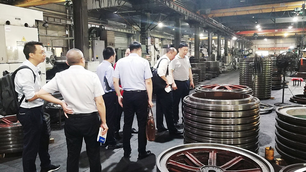 會后,在董事長傅開實(shí)陪同下,專家組一行人走進(jìn)車間,深入了解公司的生產(chǎn)情況以及針織大圓機(jī)的制作工藝。